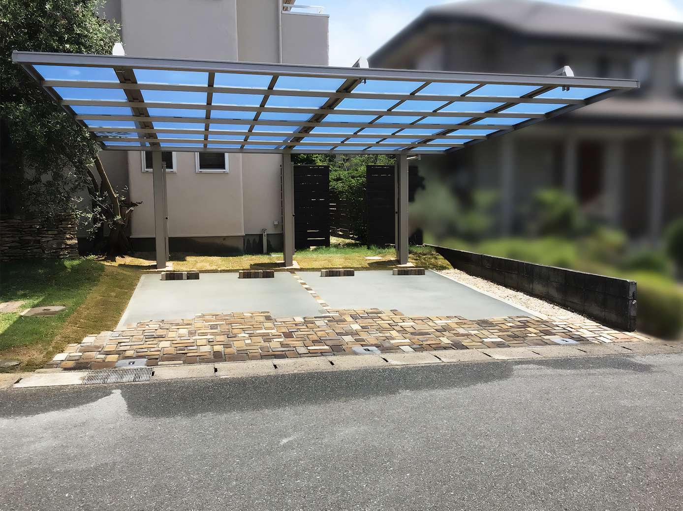 下記の記事では、梁を延長することでエントランスのような空間を実現したカーポートの施工事例をご紹介しています。