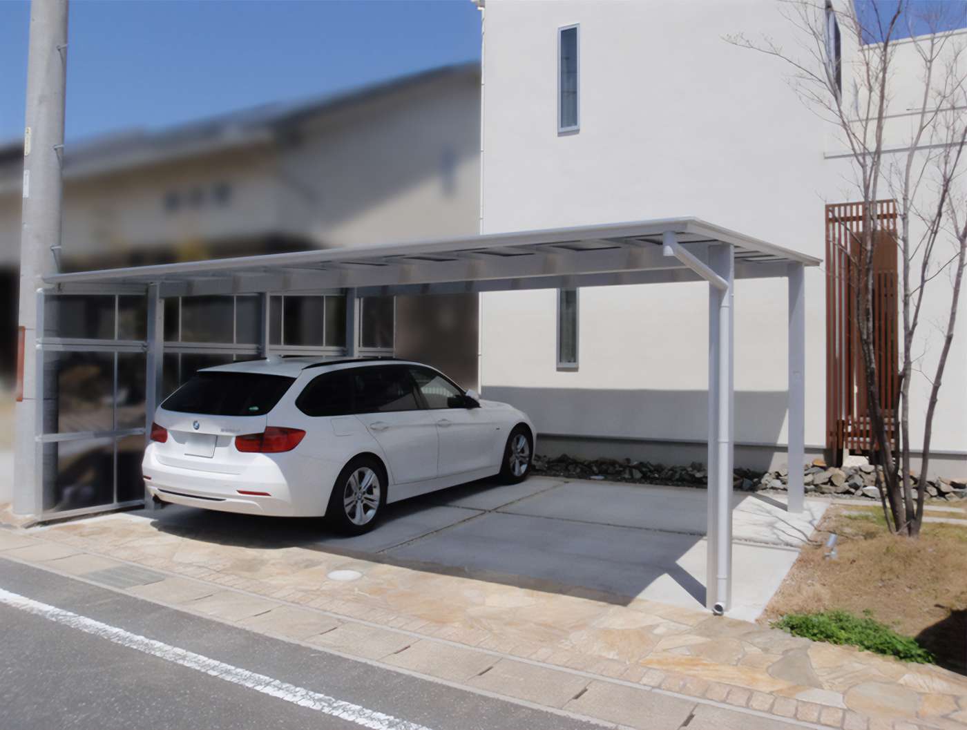 鋼製カーポートは強度が高く、安定した4本、6本のものが主流で屋根材も折板鋼板を用いており豪雨や強風の日にも安心です。
