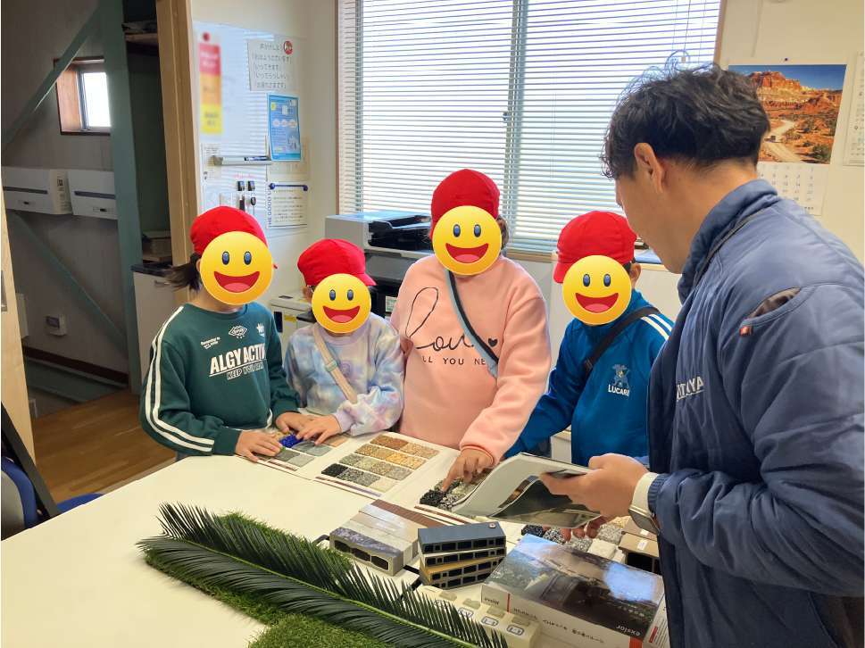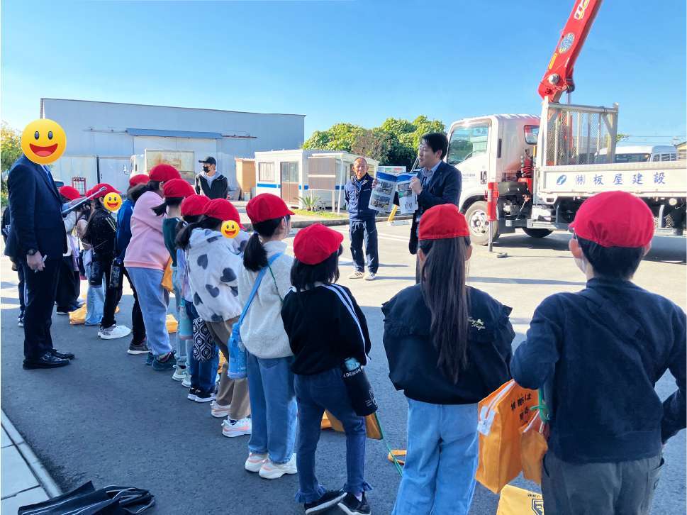 この度、地元小学校の2年生14名の皆さんが、株式会社板屋建設に社会科見学にお越しくださいました。子どもたちの純粋な好奇心と真剣な学習姿勢に、私たちスタッフも多くのことを学ばせていただいた貴重な一日となりました。