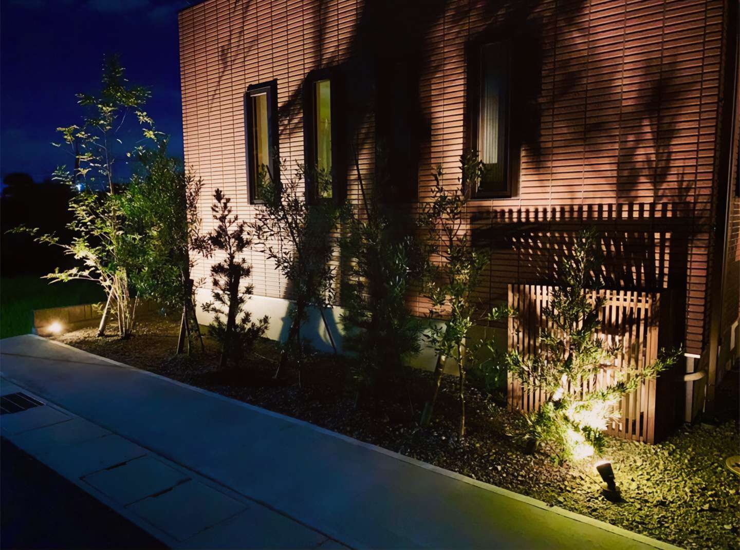 もうひとつが夜間照明。プロはただ“明るくする”のではなく、“必要な場所だけを適度に照らす”ことを重視します。たとえば足元を照らすフットライトや、アプローチの段差を視認しやすくする照明などは、安全性だけでなく防犯性の向上にもつながります。