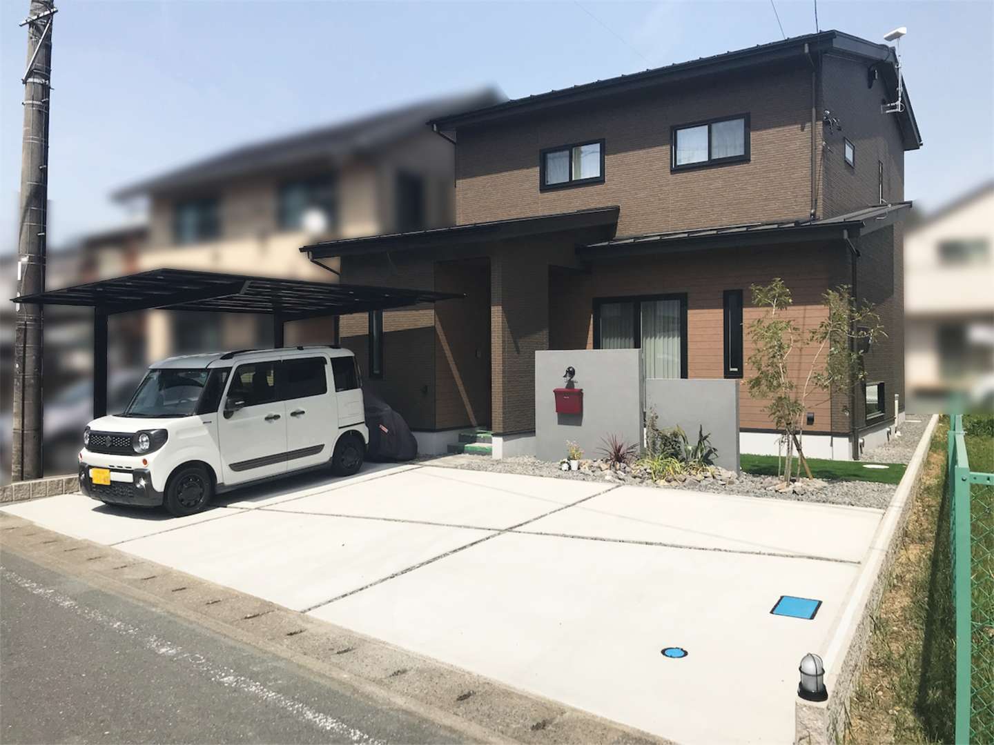 カーポート本体のカラーは建物外観に合わせて選定し、統一感のある仕上がりとなりました。