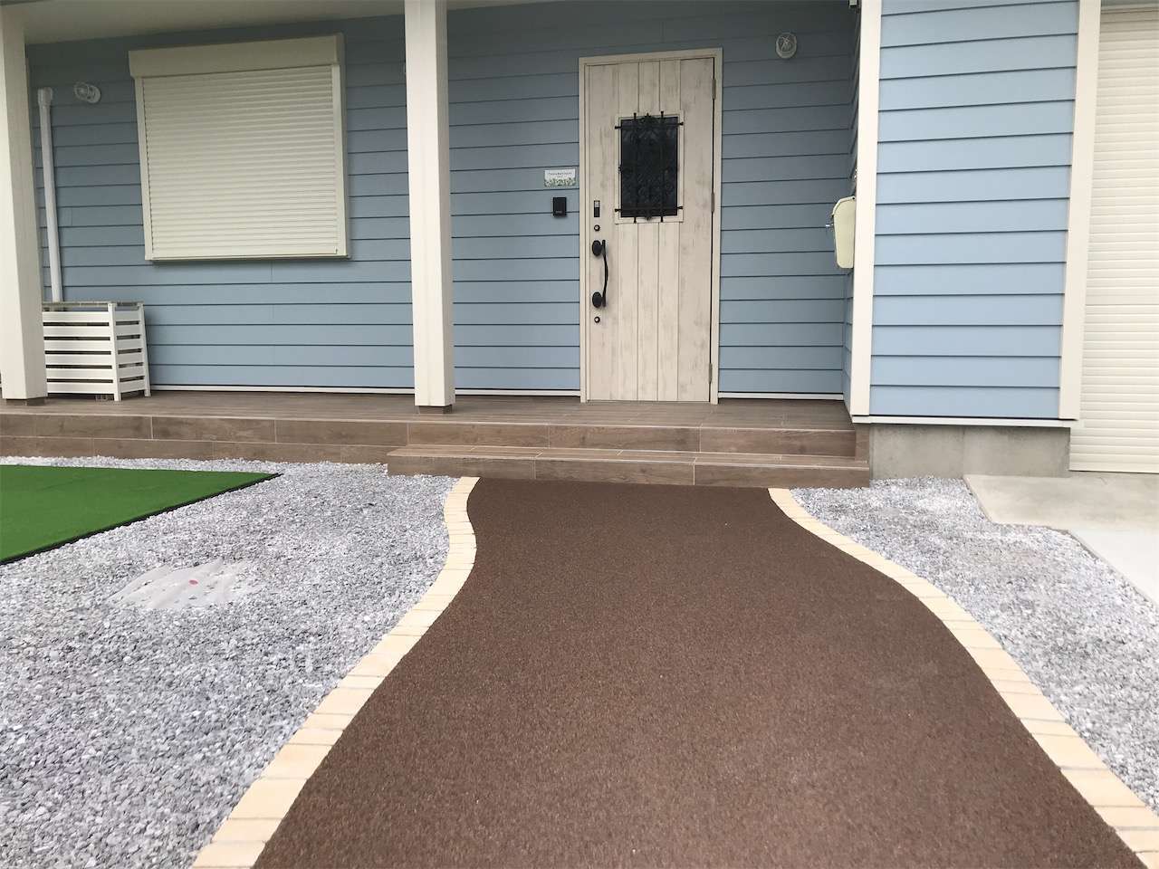 アプローチをレンガラインで囲うことによってより引き締めてくれています。
