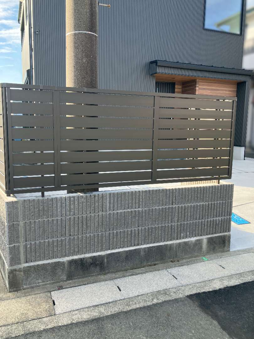 基礎部分には適切な高さのブロックを積み上げ、その上部にLIXIL製「フェンスAB YS3型」を設置することで、必要十分なプライバシー確保を実現しています。