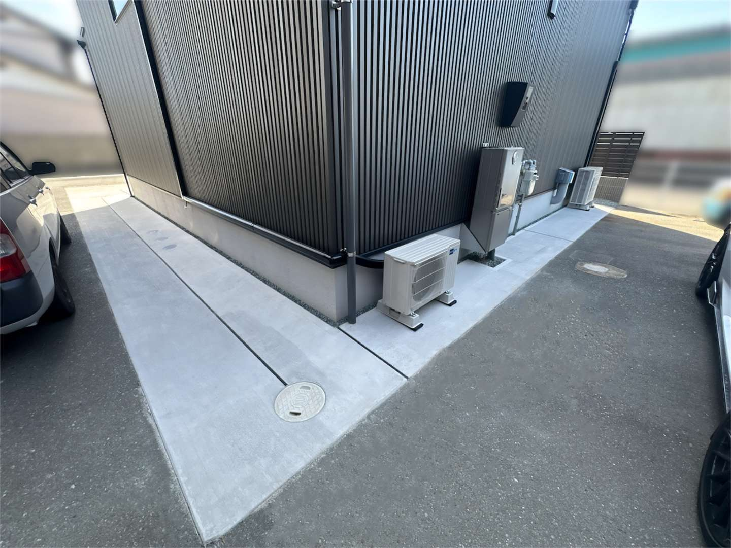 特に、建物際の狭いスペースは除草作業が困難な箇所となりがちですが、コンクリート敷設により、この問題を根本的に解決しています。